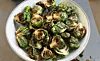 Servera den friterade brysselkålen med yoghurtdip.