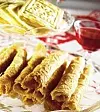 Klipp till ett mått av papp, lika stort som kakytan inuti järnet. Kavla ut bitar av degen, helst till en rektangulär platta. Den ska vara tunn, nästan så att man kan skönja bakbordets mönster igenom. Skär till plattor enligt det tillklippta måttet.