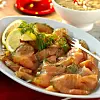 Häll bort lagen och skrapa av dillen och skär laxen i tunna skivor.