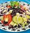 Du behöver Gör så här 1 1 Häll bönorna i sil och skölj dem noga. Låt rinna av. Skölj alla grönsaker. Skiva sallad, tomater och...