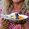 Ansa och skär bort mittstocken i ananasen. Skär ananasen i klyftor. Grilla tills den får fina grillränder. Sila lagen och häll den över bär eller frukt. Servera med vaniljglass.