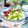 Grillad korv med potatis- och bönsallad