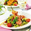 Grillade räkor med spenatfettucini och tomatsås