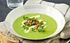 Häll upp soppan i skålar och ringla över citronsmetana, strö över bacon och ärtor och toppa med lite plockad körvel.