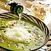 Låt inte soppan på gröna ärter koka för länge, då bleknar den friska gröna färgen. Vill man spetsa soppan med vitt vin eller mousserande vin får den drag av den fina klassiska soppan Crème Ninon.