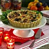 Pajdeg: Hacka samman smör och båda mjölsorterna till en smulig massa. Tillsätt kallt vatten och arbeta snabbt ihop till en deg. Tryck ut degen i en pajform, 24 cm i diameter. Nagga och låt stå kallt i 30 minuter. Förgrädda i 10 minuter.