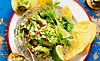 Blanda i chili, koriander och lök. Smaka av med limesaft och salt. Servera med nachos.