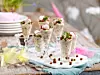 Fördela gubbröran i små glas och toppa med rostad kavring, tunt skivade rädisor och klippt krasse.