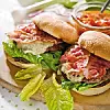 Servera med varma bröd, dressing och övriga tillbehör.