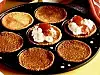 Vispa i ett ägg i taget och salta. Värm plättlaggen till medelvärme, pensla plättgroparna med smör och fördela smeten i groparna. 1 dl smet blir 3 plättar. Grädda på båda sidor. Fortsätt pensla och grädda tills smeten är slut.