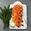 Låt stå i kylen cirka två dygn. Vänd runt laxen någon gång per dag. Torka bort rester av marinaden vid servering och skär laxen i tunna sneda skivor.