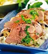 Skeda upp såsen i ett djupt serveringsfat. Skiva filén och lägg ovanpå såsen. Strö persilja över och servera med gratängen.