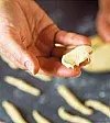 2. Trilla dem till ojämna strimlor mellan handflatorna. Lägg att vänta på lätt mjölat underlag.