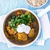 Salta och peppra kycklingen. Hetta upp olja i en djup stekpanna med lock och bryn kycklingen. Lägg åt sidan. Stek de torra kryddorna i samma panna utan att diska den emellan. Stek under omrörning tills det börjar dofta. Tillsätt lök, vitlök och ingefära. Stek ytterligare någon minut. Tillsätt kyckling, buljongtärning och vatten. Låt småputtra 20–30 minunter med lock. Servera grytan med färsk koriander, yoghurt och råris.