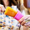 Blanda ingredienserna och för­dela i isglassformen. Frys drinkarna över natten.