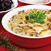 Häll på mjölk och hälften av grädden och baka i 30 minuter. Häll på resten av grädden och baka i ca 15 minuter till, tills gratängen är klar. Garnera med persilja.