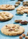 Lägg kakorna på bakpappersklädd plåt och tryck fast några rostade jordnötter på varje kaka.