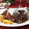 Julchokladfondant med marinerade fikon och persika