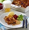 Tillaga i ugnen i 40 minuter. Servera med potatis, lingonsylt och gurka.
