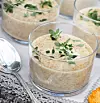 Vid serveringen kokas soppan upp och mixas slät och skummig med en stavmixer. Häll upp i små glas som rymmer ca 1 1/2 dl. Garnera med citrontimjan.