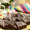 Ganache: Värm grädden med ­saltet till kokpunkten i kastrull. Krossa under tiden chokladen (enklast är att upprepat daska det oöppnade paketet i bänken) och rör sedan ut chokladsmulet och smöret i den heta grädden tills allt smält. Bred smeten jämnt över kakan och strö på kokos. Låt stelna innan kakan skärs i rutor, 5 x 5 cm, gärna med pizzaskärare.