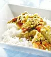 2 Häll i mango chutney, buljong och lime. Koka 3 minuter, rör i yoghurt, koka en minut till.
