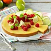 Garnera med hallon och lime. Servera med grädde.