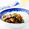 Lägg tillbaka köttet i grytan och tillsätt ananasen skuren i bitar.