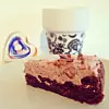 Lossa kladdkakan ut formen och bred grädden över och dekorera med hackad daim.