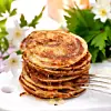 Hetta upp en plättlagg och lägg i smör. Lägg ca 2 msk smet till varje plätt och lägg på äppelskivor. Stek tills smeten stelnat och vänd plättarna och stek andra sidan. Servera med sirap och kanel.