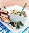 Du behöver Tillbehör: rostat bröd pickles Gör så här Sätt ugnen på 75 grader. Vispa samman grädde, crème fraiche, ägg, gräslök och kryddor. Rör ner...