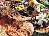 Dela degen i fyra lika stora delar. Klappa ut dem med mjölad hand på papprade eller mjölade plåtar, två på varje, cirka 15 cm i diameter. Strö på garnering som klappas ner i degen.