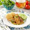 Du behöver Servera med: potatis Gör så här 1 Dela varje filé på längden. Bryn runt om i smör i stekpanna. Tillsätt grädde, fond, pressad...