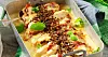 Skiva kycklingen, den kommer inte vara klar vid det här laget. Varva kyckling och skivad mozzarella, salami och tomater i en smord ugnsform. Häll på såsen och strö över svampfräs. Gratinera i ugnen tills kycklingen är klar, ca 20 minuter. Toppa med basilika och servera med rostad potatis och sallad.