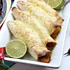 Lägg två skedar på varje tortillabröd och rulla samman. Lägg rullarna i en ugnssäker form och strö över osten.