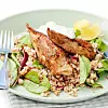 Servera kycklingen med mathavre och fetaostkräm.