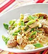 3 Strö till sist ner resten av löken och grovt hackad koriander. Servera kycklingen med ris och grönsallad med strimlad vitkål i.