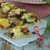 Skala, dela och skiva löken. Stek löken mjuk tillsammans med skivad svamp och timjan i en stekpanna med smör. Salta och peppra.