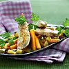 Du behöver Garnera med: slätbladig persilja Servera med: ris Gör så här 1 Skala och skär morötterna i stavar och fräs dem ett par minuter...