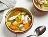 Bjud på soppa med rotfrukter och kyckling på franskt vis med klar buljong och pepprig dijonsenap som tillbehör.