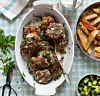 Garnera biffarna med strimlad persilja. Servera med potatis, skivad rödlök, tärnad gurka och yoghurt.