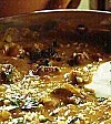 Strö skållad, skalad och hackad mandel över lammgrytan och servera den med kokt ris och mango chutney.