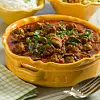 Fräs svamp, squash och aubergine i het stekpanna med olja, och lägg över i grytan tillsammans med ajvar relish. Låt sjuda i 10 minuter.