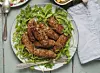 Servera de saftiga lammfärsjärparna med en fräsch yoghurt med mynta och granatäpple, det är snyggt att bre ut den på ett fat.