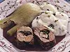 Bryn köttrullen runt om och lägg den i 175 grader varm ugn. Stek tills innertemperaturen är 72 grader. Det tar ca 20 minuter. Skär köttet i 6 skivor och lägg 2 till var och en. Peta fram de små rosetterna så går det lätt att med hjälp av kniv och gaffel lösa dem.