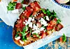 Grilla eller rosta brödet och gnid in det med vitlöken. ­Toppa med salsan. Garnera med smulad fetaost. Peppra.