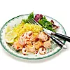 3 Tillsätt räkorna och vänd runt i pannan. Dra av från värmen och servera genast med riset och citronklyftor. En god grönsallad och aioli är gott att servera till.