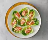 Här samsas lax, avokado, krispig rättika och snabb jordnötssås i små skålar av salladsblad. Laxen kan bytas mot handskalade räkor.