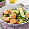 Du behöver Gör så här 1 Skär laxen i tärningar, 2×2 cm. Skala och hacka vitlöken. Kärna ur och hacka chilin. 2 Koka pastan. Ansa...