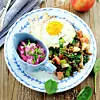 Rödbetsyoghurt: Blanda yoghurt, pepparrot, gräslök och rödbetor. Smaka av med salt. Servera med stekt eller hårdkokt ägg.
